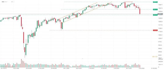 Większe spadki natomiast obserwujemy w Warszawie, gdzie wszystkie indeksy tracą już po ok. 9%! Wynika to przede wszystkim z czynnika strachu, nawet nie o bezpieczeństwo Polski. Globalny kapitał redukując ekspozycję na ryzyko zawsze ucieka z rynków będących blisko epicentrum kryzysu. WIG20 jest najniżej od grudnia 2020 roku, a w jego składzie najmocniej tracą LPP (ekspozycja na wschodnie rynki), Allegro (słabe wyniki) oraz duże banki.