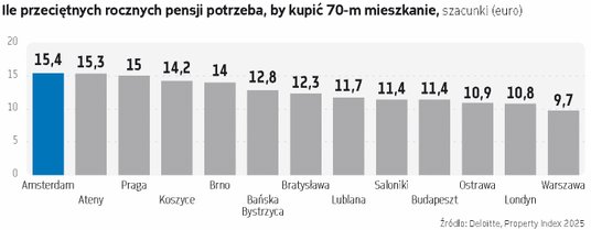Analitycy Deloitte wzięli na tapetę dane za 2024 r. Pod względem wyrażonej w euro średniej ceny ofertowej nowych lokali Polska uplasowała się na 17. miejscu (na 25 krajów) z wynikiem 2792 euro za mkw. Jesteśmy liderem pod względem dynamiki: wzrost stawki wobec 2023 r. przekroczył 19 proc. Jeszcze większą dynamikę odnotowano w poszczególnych miastach: w Krakowie (lider zestawienia) 28 proc., w Łodzi prawie 23 proc., w Warszawie 22 proc.