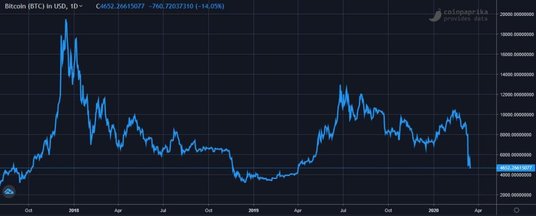 Gwałtowny, piątkowy spadek poniżej 4000 USD wywołał szybą reakcję popytu i jeszcze tego samego dnia cena wróciła w okolicę 5500 USD. W weekend nie udało się kontynuować odbicia. Kurs bitcoina utrzymywał się poniżej 6000 USD, by dziś przed południem zniżkować w okolicę 4500 USD. Co ciekawe - wczorajsza decyzja Fedu o cięciu stóp i nowym QE wywołała tylko chwilowe odbicie do 6000 USD. Wygląda więc na to, że nawet psucie pieniądza fiducjarnego nie jest w stanie zawrócić dominującego od kilku tygodni trendu. Niektórym może to się wydawać dziwne, bo przecież bitcoin powstał jako alternatywa dla tradycyjnych walut, jako tworów scentralizowanych i całkowicie zależnych od "widzi mi się" banków centralnych. Obecna sytuacja pokazuje, że bitcoin chyba do przyjęcia roli takiej alternatywy jeszcze nie dojrzał (na co wskazuje chociażby to, że nie jest on powszechnie używany jako środek płatniczy). Z pewnością natomiast dojrzał do bycia aktywem spekulacyjnym, co tłumaczyłoby obserwowany właśnie trend odpływu kapitału z tego rynku. Bitcoin spada, podobnie jak inne aktywa uznawane za ryzykowne, czyli akcje. Patrząc po ostatniej, dodatniej korelacji rynku kryptowalut z akcyjnym trudno oczekiwać, by nagle doszło do jakiejś rozbieżności. Wprawdzie bitcoin nie raz pokazywał, że jest nieskorelowanym aktywem, ale teraz kapitał zdaje się nie patrzeć na nazwy aktywów, tylko na poziom ich ryzyka.