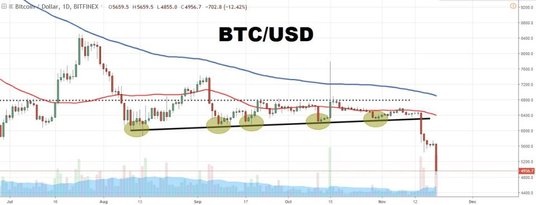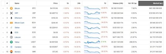 Kierunek całemu rynkowi nadaje oczywiście bitcoin. W poniedziałek o 23.00 jego kurs spadał już do 4909 USD, co jest najniższym poziomem od października ubiegłego roku i jednocześnie nowym dołkiem tegorocznej bessy. Od środy cena spadła już o 24 proc., co jest najsilniejszym tąpnięciem od przełomu lipca i sierpnia (wtedy kurs zanurkował w kilka dni o 27 proc.).