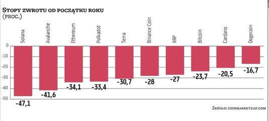 Niektórzy eksperci mówią o możliwości „kryptozimy". Mrożący krew w żyłach termin odnosi się do gwałtownego załamania, po którym następuje spadek obrotów i miesiące zastoju na rynku. Tak było w 2018 r., kiedy cena bitcoina spadła o ponad 80 proc. ze swojego szczytu z grudnia 2017 r. Bitcoin nie osiągnął nowego maksimum aż do grudnia 2020 r.