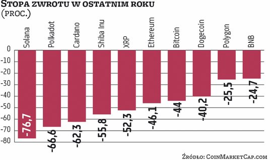 Rosnące notowania bitcoina, a także ethereum czy BNB sugerują, że na razie rynek nie do końca dopuszcza realizację scenariusza dłużej utrzymujących się wysokich stóp procentowych. – Inflacja w Stanach Zjednoczonych okazała się wprawdzie nieco wyższa od prognoz, ale rynki wydają się ignorować możliwe dalsze podwyżki stóp procentowych przez Fed. Może to być o tyle istotne, że kryptowaluty, będące „dziećmi” niskich stóp procentowych, zdają się dziś mocno zależne od polityki banków centralnych. Dopóki jednak na rynek kryptowalut nie napłyną nowe środki, dopóty ciężko będzie o początek nowej hossy – uważa Dróżdż.