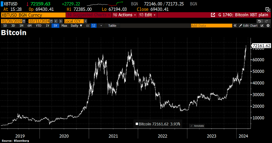 MicroStrategy Inc., firma zajmująca się oprogramowaniem dla przedsiębiorstw, która uczyniła zakup Bitcoina częścią swojej strategii korporacyjnej, poinformowała w poniedziałek, że wydała 822 miliony dolarów na zakup większej liczby tokenów od 26 lutego do 10 marca. MicroStrategy ogłosiło, że kupiło 12 000 bitcoinów, zwiększając swoje zasoby do 205 000 tokenów. Prezes MicroStrategy Michael Saylor powiedział, że w przyszłości kryptowaluta będzie znacznie cenniejszym aktywem niż złoto.