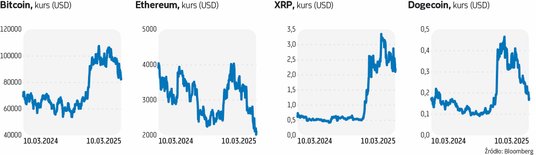 Nowa administracja Trumpa częściowo spełniła już nadzieje branży kryptowalutowej, stawiając na bardziej przyjazny reżim regulacyjny. Powołanie narodowej rezerwy kryptowalut okazało się jednak rozczarowaniem dla rynków. Początkowo Trump doprowadził do sporego zamieszania na rynkach, ogłaszając, że w skład rezerwy wejdą, oprócz bitcoina i etheru, kryptowaluty takie jak xrp, solana i cardano. To dało krótkotrwały impuls do zwyżek ich kursów, ale część analityków wskazywała, że rezerwa powinna skupiać się tylko na bitcoinie i nie obejmować arbitralnie włączonych, mniej płynnych tokenów. W zeszłym tygodniu Trump podpisał rozporządzenie o stworzeniu dwóch rezerw kryptowalutowych – jednej bitcoinowej, a drugiej obejmującej inne tokeny. Obie mają się opierać na zasobach kryptowalut przejętych przez władze USA m.in. od przestępców. Rozporządzenie dopuszcza powiększanie rezerwy bitcoinowej poprzez zakupy, ale ma się to odbywać w sposób „neutralny budżetowo”, tak by „nie obciążać podatników”. Rezerwa innych kryptowalut będzie powiększana jedynie w wyniku konfiskat tokenów przestępcom. Obecnie w rękach rządu USA znajdują się bitcoiny warte łącznie około 17,5 mld USD oraz inne kryptowaluty wyceniane na około 400 mln USD.