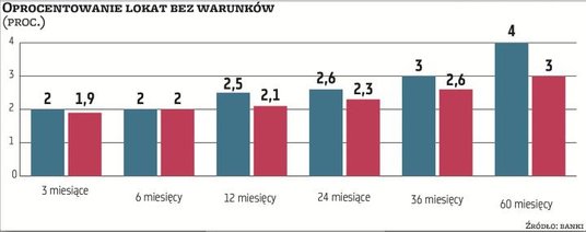 Czy zatem zniknęły depozyty z promocyjnym oprocentowaniem, mającym przyciągnąć klientów i zachęcić do zakładania rachunków osobistych? Ależ skąd. Nest Bank nadal zachęca do lokowania do 10 tys. zł na trzy miesiące (dla klientów otwierających konto) i na sześć miesięcy (otwierając konto, trzeba zapewnić na nie wpływy wynagrodzenia lub emerytury). Tyle samo maksymalnie może ulokować w Plus Banku na Lokacie na Start posiadacz Konta Plus, założonego w ciągu ostatnich 12 miesięcy, nieposiadający żadnych lokat. Oprocentowanie 4 proc. to średnia: 3 proc. w pierwszym, 4 proc. w drugim i 5 proc. w trzecim miesiącu. Lokatę można zerwać po upływie miesiąca lub dwóch bez utraty odsetek.