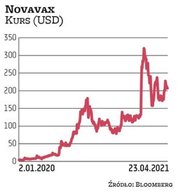 Mimo że szczepionka amerykańskiej spółki Novavax czeka jeszcze na zatwierdzenie, jej notowania wzrosły w 2020 r. o 2400 proc. Na początku ub.r. walory kosztowały 4,5 USD, a w sierpniu blisko 180 USD. Następnie przez kilka miesięcy notowania poruszały się w trendzie bocznym, aby w lutym tego roku wzrosnąć do 320 USD. Obecnie akcje kosztują 207 USD. dos