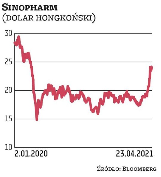 Produkcją szczepionek zajmują się też m.in. chińskie koncerny jak np. Sinopharm, notowany na giełdzie w Hongkongu. Kurs spółki w ubiegłym roku spadł, jednak wzmożony popyt widać od marca tego roku. Akcje Sinopharmy zdrożały od początku roku o 30 proc. i są na najwyższym poziomie od roku. Firma chce być największym producentem szczepionek na Covid-19 na świecie. dos