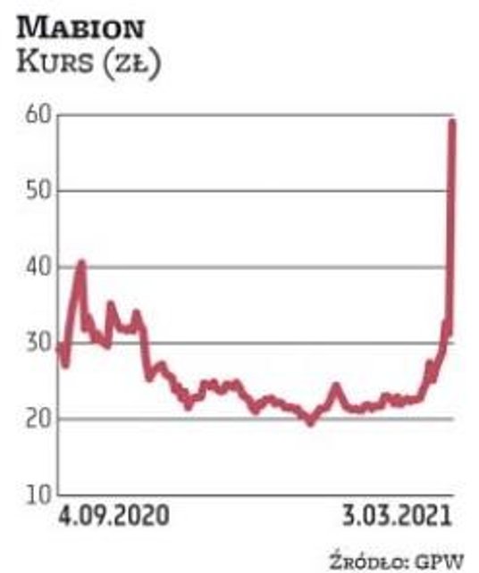 Mabion zawarł z amerykańską firmą biotechnologiczną Novavax umowę na transfer technologii i próby techniczne dotyczące produkcji antygenu kandydata na szczepionkę na Covid-19. Rozbudziło to ogromne oczekiwania inwestorów. W środę akcje Mabionu drożały nawet o 90 proc. przy potężnych obrotach.