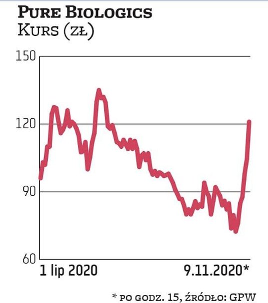 W ramach oferty akcji serii E Pure Biologics wyemituje do 600 tys. walorów. Spółka zamierza pozyskać ok. 57 mln zł. Do 100 tys. akcji trafi do transzy detalicznej, pozostałe zostaną zaoferowane inwestorom instytucjonalnym. Przy założeniu, że inwestorzy obejmą wszystkie akcje, cena za sztukę wyniesie 95 zł. Jest niższa od kursu – w poniedziałek po godz. 13 walory drożały o niemal 12 proc., do 117 zł. 20 listopada spółka zaprezentuje cenę maksymalną akcji. Od 23 listopada rozpocznie się proces budowania księgi popytu. Zapisy potrwają od 24 do 30 listopada, a koordynatorem oferty jest DM BOŚ. Dopuszczenie akcji do obrotu nastąpi w połowie grudnia – przewiduje spółka. I liczy, że debiut na GPW nastąpi w tym roku.