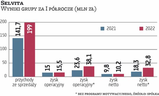 Notowania Selvity rozpoczęły środową sesję od zwyżek. Po południu akcje kosztowały 83,5 zł, co oznaczało prawie 6-proc. zwyżkę. Towarzyszyły jej wysokie obroty. Tylko w pierwszej połowie sesji ich wartość sięgnęła 2 mln zł. Kurs jest najwyżej od początku roku. Do maksimum z grudnia 2021 r. brakuje mu 6 proc.