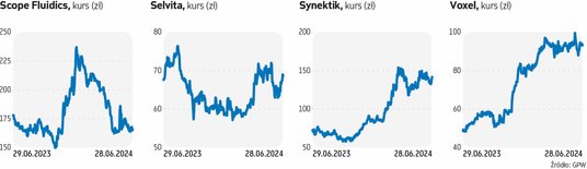 Choć WIG, czyli główny indeks warszawskiej giełdy, bije kolejne rekordy, walory spółek z branży biotechnologicznej w większości przypadków niewiele skorzystały z hossy. Są one pod wpływem globalnego negatywnego nastawienia do całej branży biotechnologicznej, co z kolei przekłada się na ich niskie, czyli atrakcyjne zdaniem analityków wyceny. Odnosząc ceny docelowe zawarte w rekomendacjach do aktualnych wycen giełdowych, o przewartościowaniu możemy mówić jedynie w przypadku Mabionu. Z kolei najbardziej niedowartościowane są papiery Captora, Scope Fluidics, Ryvu i Celon Pharmy. Jednocześnie dużo więcej powodów do radości mieli posiadacze walorów producentów urządzeń medycznych, którzy z uwagi na osiąganą sprzedaż (choć nie w każdym wypadku tak jest) stanowią mniej ryzykowną opcję dla inwestorów. W tym gronie nie brakuje firm, których kursy rosły nawet szybciej niż WIG, który w okresie ostatnich 12 miesięcy zyskał nieco ponad 33 proc. Tymczasem akcje takich spółek, jak Synektik czy Voxel, niemal podwoiły swoją wartość.