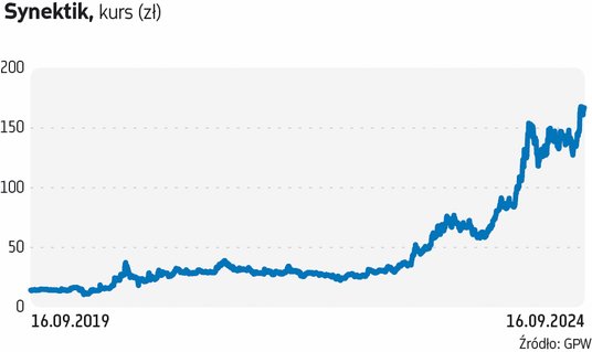 Dobra tegoroczna passa notowań Synektika zdaje się nie mieć końca. Z początkiem września zwyżki znów przyspieszyły, wynosząc kurs na nowe szczyty. Tylko od początku stycznia cena akcji spółki podwoiła się, a stopa zwrotu za okres ostatnich pięciu lat to już blisko 1200 proc.