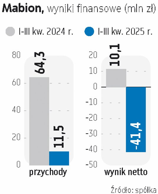 Po trzech kwartałach Mabion miał tylko nieco ponad 10 mln zł przychodów wobec 64,3 mln zł w analogicznym okresie poprzedniego roku, co przełożyło się na 39,4 mln zł straty operacyjnej. – Mabion jest w trakcie transformacji swojego modelu biznesowego, aby dostosować się do realiów post-COVID i otworzyć przed spółką nowe perspektywy wzrostu. W III kwartale 2025 r. świadczyliśmy usługi CDMO czterem klientom – z siedzibą w Stanach Zjednoczonych, Wielkiej Brytanii, Brazylii i Polsce. Skala tych zleceń i generowane przez nie przychody pozostają jednak poniżej oczekiwań, co przełożyło się na stan gotówki 4,6 mln zł na koniec września – wskazuje Gregor Kawaletz, prezes Mabionu. Dlatego priorytetem zarządu jest zabezpieczenie dalszego finansowania spółki. – Zabezpieczyliśmy już finansowanie pomostowe w wysokości 18 mln zł od głównego akcjonariusza. Było to konieczne w perspektywie krótkoterminowej, ale docelowo nie chcemy ani nie zamierzamy korzystać z pożyczek zewnętrznych, aby utrzymywać wysoki poziom środków pieniężnych w spółce – chcemy generować przychody poprzez pozyskiwanie klientów. To nasz główny cel i priorytet – podkreśla.