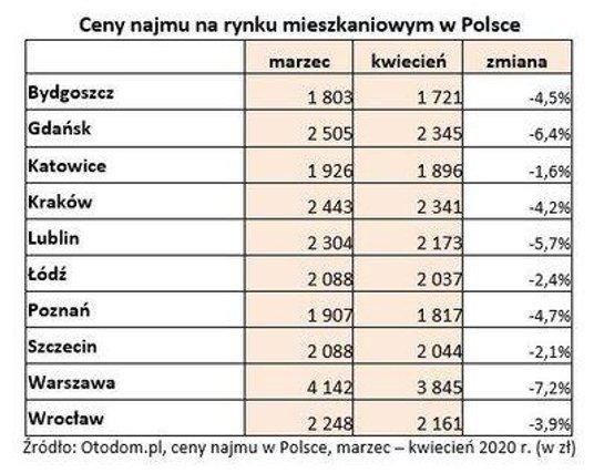 Jednym z kluczowych ryzyk jest spadek dochodów z czynszu. Wartość czynszu jest determinowana popytem na wynajem i podażą nieruchomości pod wynajem. Zarówno popyt, jak i podaż, mają w tym przypadku charakter lokalny. I to lokalny rynek wyznacza wartość czynszu, jaki możemy uzyskać, a tym samym stopę zwrotu z inwestycji oraz poziom ryzyka jej towarzyszący – zaznacza Biuro Informacji Kredytowej. W ostatnich miesiącach popyt na wynajem długoterminowy znacząco zmalał w wyniku braku studentów (studia on-line), odpływu pracowników z zagranicy (wyjazd z Polski) oraz praktycznie wstrzymania wyjazdów biznesowych (przejście na pracę zdalną). Spadek popytu na rynku wynajmu w wyniku pandemii potwierdza Jarosław Krawczyk, ekspert z portalu Otodom. - Zachwiane zostały proporcje popytu i podaży. Z jednej strony do swoich domów wrócili studenci i pracownicy zagraniczni, zwalniając dotychczas zajmowane mieszkania. Nie ma też turystów, którzy korzystali z najmu krótkoterminowego, z lokali wynajmowanych na doby, powszechnych dziś na rynku. Mniejszy popyt zderzył się z większym wyborem dostępnych mieszkań na wynajem, co skutkuje obniżeniem oczekiwań właścicieli odnośnie kwoty za wynajem. Wolą oni wynająć mieszkania taniej niż utrzymywać puste lokale, które przecież wciąż generują koszty utrzymania, a jeśli zostały kupione na kredyt, wymagają spłacania kolejnych rat. Wahania cen najmu mieszkań zdarzały się regularnie. Jednak dawno nie było miesiąca, w którym we wszystkich miastach obserwowaliśmy spadki. W kwietniu ceny najmniej spadły w Katowicach (o 1,6%), a najbardziej w Warszawie - aż o 7,2% - podsumowuje Krawczyk.