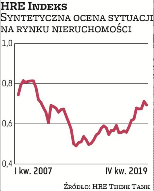 Na koniec 2019 r. wartość indeksu HRE wyniosła 0,69. Eksperci podkreślają, że odczyt w granicach 0,15–0,85 świadczy o zdrowej kondycji rynku. Indeks, którego cokwartalna publikacja ruszyła na początku 2018 r., opiera się na czterech subindeksach: cen nieruchomości (na rynku pierwotnym i wtórnym), sektora bankowego (monitoruje akcję kredytową i zadłużenia z tytułu kredytów hipotecznych względem PKB), gospodarstw domowych (określa relacje cen lokali i wynagrodzeń oraz zadłużenie gospodarstw domowych z tytułu kredytów hipotecznych względem aktywów finansowych) oraz sektora budownictwa (dane o lokalach oddanych, będących w budowie i przygotowaniu).