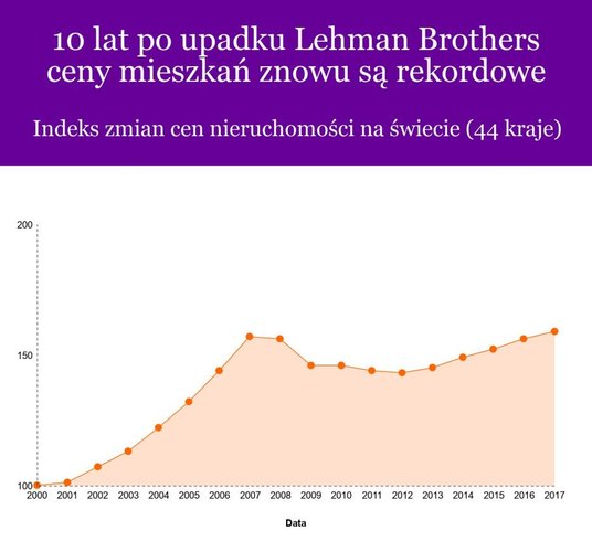 15 września 2008 roku, czyli 10 lat temu, upadł bank inwestycyjny Lehman Brothers. To symboliczny początek kryzysu, który wybuchł na amerykańskim rynku nieruchomości. Stamtąd rozlał się na większość krajów świata wywołując kryzys zaufania i m.in. przeceny mieszkań i domów. Dotknięte zostały prawie wszystkie kraje, które badają i udostępniają dane na temat zmian cen nieruchomości. Jedne poradziły sobie z zawirowaniami bardzo szybko i zostały uznane przez inwestorów za bezpieczną przystań dla kapitału (np. centrum Londynu, Szwajcaria czy Australia) podczas gdy w innych problemy trwały latami (USA, Hiszpania, Grecja, Bułgaria).