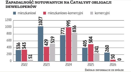 Jego zdaniem ten rok nie powinien być dla deweloperów dużym wyzwaniem w kontekście wykupu obligacji. Bardziej istotne będą lata 2023–2024, kiedy wartość zapadającego długu jest znacząca, a sprzedaż mieszkań w tym roku prawdopodobnie pozostanie na niższym poziomie.