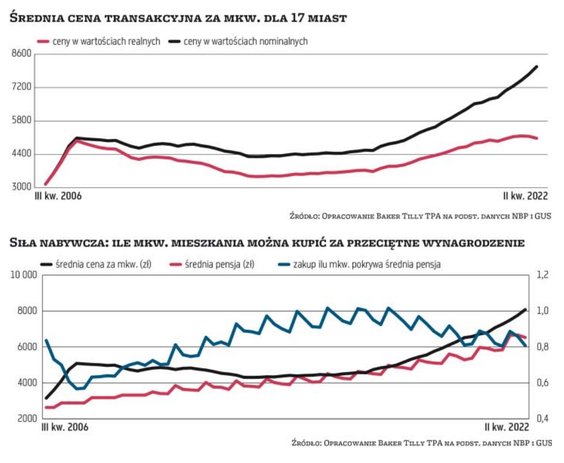 „Po podwyższonych poziomach w okresie poprzedniej hossy i w czasie spadków cen, od około ośmiu lat relacja ta jest dość stabilna, na zakup mkw. potrzeba 1,0–1,2 średniej pensji. Oznacza to, że wyższe ceny są efektem wyższej siły nabywczej i rosnących zarobków Polaków i również ten parametr nie wskazuje na odchylenie się cen mieszkań od normalnych poziomów dla naszego rynku” – czytamy w raporcie Baker Tilly TPA.