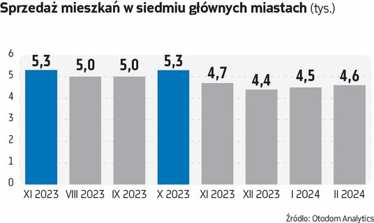 W lutym w siedmiu głównych polskich aglomeracjach deweloperzy sprzedali 4,6 tys. lokali, o 9 proc. więcej miesiąc do miesiąca i o 17 proc. więcej rok do roku – wynika z monitoringu firmy Otodom Analytics. To oznacza, że sprzedaż jest stabilna nawet bez dopalacza w postaci „Bezpiecznego kredytu 2 proc.” (patrz wykres).