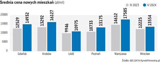 Pytanie jest tym bardziej zasadne, że, jak mówi Jędrzyński, sytuacja na rynku mieszkań „w pierwszych miesiącach tego roku powoli, ale systematycznie powraca do względnej normalności”. – Rynek pierwotny dąży do równowagi popytu i podaży – ocenia ekspert, zwracając uwagę na dane: od początku 2024 roku średni wzrost cen mkw. nowego lokum na siedmiu głównych rynkach wyniósł 3,5 proc. Najbardziej, o ok. 5–7 proc., podrożały lokale w Warszawie, Łodzi i Poznaniu, najmniej w Trójmieście i aglomeracji katowickiej (0 i 1 proc.).