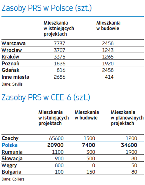 Firma Savills szacuje zasób PRS w Polsce na ponad 20 tys. mieszkań w ofercie oraz 10 tys. w budowie. Eksperci zwracają uwagę na tempo wzrostu rynku: budowa 10 tys. lokali zajęła osiem lat, a kolejnych 10 tys. tylko dwa lata.