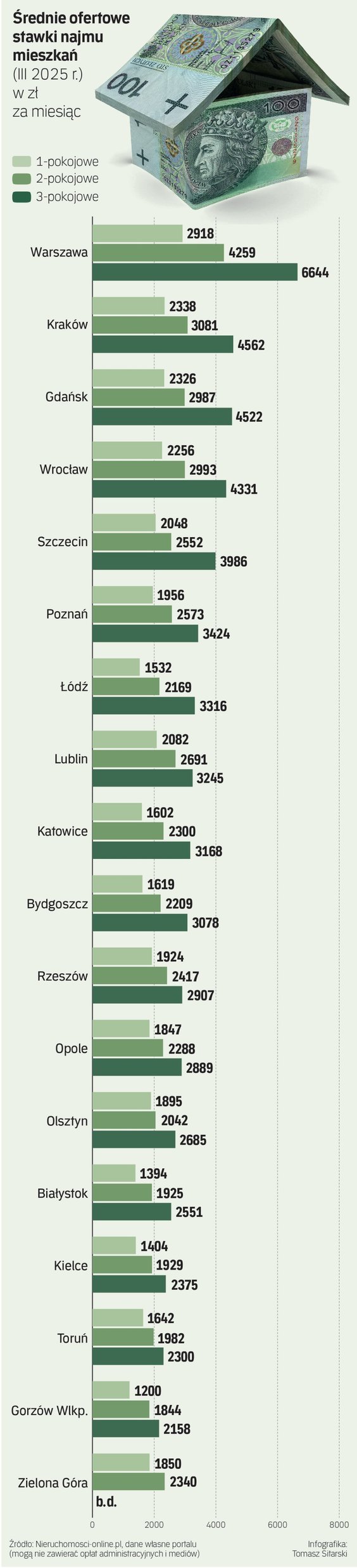 Jak dodaje, na rynku najmu są dwie główne grupy klientów. – To osoby, które docelowo planują zakup mieszkania, ale z różnych powodów dziś decydują się na wynajem. Zamieszkać w wynajmowanym chcą także obcokrajowcy imigranci, którzy przyjeżdżają do Polski uczyć się czy pracować – wskazuje analityk. – Część popytu generują standardowo osoby, które szukają nowego lokum ze względu na zmianę miejsca pracy, rozpad związku, sprzedaż wynajmowanego lokalu przez jego właściciela.
