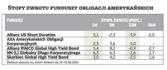 Trzeba przyznać, że z perspektywy krajowego inwestora wybór funduszy, których jednostki uczestnictwa mogą korzystać na działaniach podejmowanych przez spółkę powołaną przez Fed, nie jest szeroki. Na podstawie klasyfikacji funduszy przez serwis analizy.pl oraz po przeglądzie ich strategii inwestycyjnych wytypowaliśmy pięć takich funduszy, których strategie bliskie są zarabiania przede wszystkim na rynku amerykańskich obligacji korporacyjnych. Trzeba jednak pamiętać, że po pierwsze inwestują one na tym rynku w sposób pośredni (przez inne fundusze inwestycyjne lub przez ETF), co nie jest bynajmniej zarzutem (skala zgromadzonych aktywów nie pozwala na dokonywanie bezpośrednich inwestycji, choćby ze względu na konieczny research), po drugie zaś z inwestycjami może wiązać się ryzyko kursowe, co w przypadku inwestycji obliczonych na kilka procent zysku w skali roku ma zwykle istotne znaczenie dla osiągniętego wyniku.