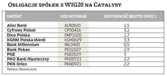 Można sądzić, że rynek obligacji nie jest właściwym miejscem dla inwestorów indywidualnych, którzy nie zajmują się na co dzień oceną ryzyka kredytowego (co robią w takim razie na rynku akcji?), ale umożliwienie im zawierania transakcji papierami o niższym profilu tego ryzyka z pewnością rynek wzbogaca. Oni sami zaś zyskują możliwość dywersyfikacji swoich portfeli i jeśli porównamy rentowności papierów spółek wchodzących w skład WIG20 z możliwościami zdeponowania środków w bankach, widać najlepiej, w czym rzecz. Po wyłączeniu papierów banków Alior i Millennium średnia rentowność takiego portfela wyniosłaby 2,6 proc. brutto, ale można ją także podbić, dokonując korzystniejszych transakcji lub wybierając papiery o dłuższym terminie wykupu np. w przypadku PKN Orlen. Jednak i na tym poziomie jest to rentowność zbliżona do średniej stopy zwrotu funduszy obligacji korporacyjnych, które dla uzyskania podobnych efektów stosują znacznie bardziej wyrafinowane strategie.