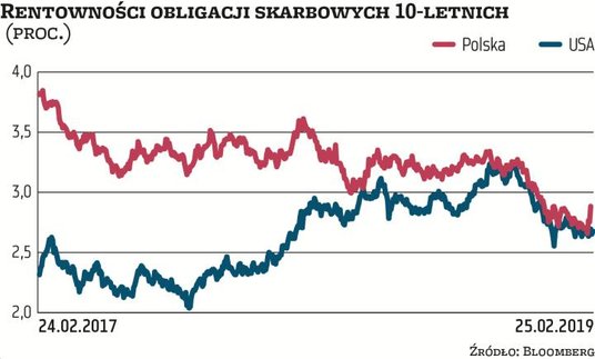 Inwestorzy znów przypomnieli sobie o ryzyku politycznym. – Festiwal obietnic wyborczych czas zacząć – tak można w kilku słowach skwitować weekendową konwencję programową Zjednoczonej Prawicy. Pomimo zbliżających się wyborów i co za tym idzie, wzrostu ryzyka „kupowania głosów", rynki zostały w weekend zaskoczone nowymi propozycjami zwiększenia wydatków socjalnych przez rządzące ugrupowanie – mówi Grzegorz Dobek, zarządzający w TFI BGŻ BNP Paribas. Przypomnijmy, że przedstawiciele PiS zapowiedzieli m.in. 500+ dla pierwszego dziecka, zwolnienia z podatków czy „trzynastkę" dla emerytów. Jak zareagował rynek obligacji? – Po południu rentowności polskich 10-latek rosły o około 15 pkt baz., czyli bardzo dużo jak na dzienną zmianę – zauważa Mikołaj Raczyński, dyrektor ds. strategii dłużnych w Noble Funds TFI. Podobnie silnego ruchu krajowych papierów nie było od miesięcy. – Oczywiście poziomy nominalne np. 10-latek wciąż są relatywnie nisko. W ostatnich miesiącach pomagało im otoczenie zewnętrzne, a spadki rentowności obserwowaliśmy nie tylko na krajowym, ale również wielu zagranicznych rynkach – dodaje Raczyński.