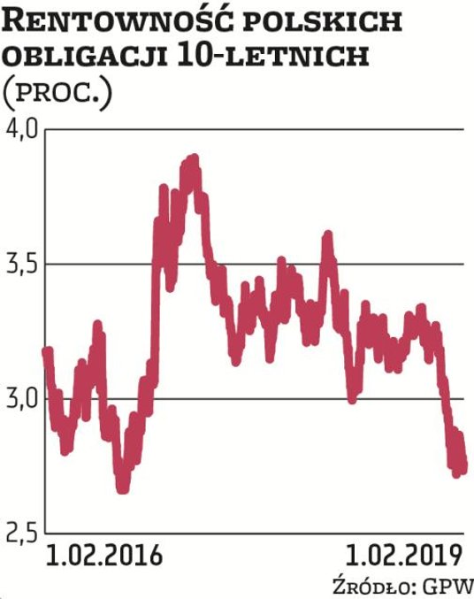 Tym samym styczeń tego roku był czwartym z kolei miesiącem, kiedy rentowność polskich skarbówek 10-letnich spadała. W ostatnich kilku latach właściwie nie było takiej sytuacji. Warto jeszcze zauważyć, że spadkom rentowności towarzyszyły w styczniu zwyżki akcji zarówno za granicą, jak i w Polsce. Zwykle indeksy akcji i obligacji podążają w odwrotnych kierunkach.