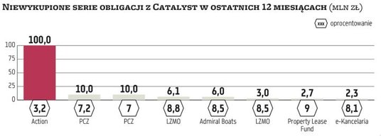 Na Catalyst jest dziewięć firm, których obligacje notowane są wyraźnie poniżej wartości nominalnej, co sugeruje, że istnieją obawy o to, że dana seria nie zostanie wykupiona (zdarza się, że efekt ten jest wzmacniany przez niską płynność handlu na Catalyst). Wśród nich są: AHP, Auxilia, Best, Biomed, Braster, Fast Finance, GetBack, Getin Noble Bank i Xsystem. Ich sytuacja jest bardzo różna – niektóre są w upadłości (Xsystem mający papiery warte 1,17 mln zł), inne mają poważne problemy (Fast Finance niespłacający obligacji), Auxilia ma słabe wyniki i robi przegląd opcji strategicznych, a AHP już wcześniej naruszył warunki emisji, ale dogadał się z obligatariuszami i spłaca zobowiązania. Z kolei Biomed Lublin największe problemy raczej ma już za sobą i dzięki porozumieniu z obligatariuszami rozłożył spłatę długu w czasie.