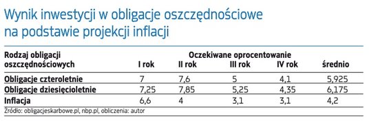 Nie jest to koniec dobrych wiadomości dla posiadaczy obligacji indeksowanych inflacją. Z najnowszej projekcji inflacji wynika, że w I kwartale przyszłego roku dynamika wzrostu CPI obniży się do 6,6 proc. Jeśli te przewidywania się spełnią, realny zysk w ostatnim roku inwestycji w czterolatki wyniesie 9,3 proc. (po opłaceniu podatku i uwzględnieniu inflacji).