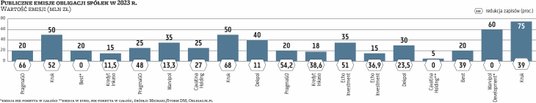 – W lipcu mieliśmy kolejne emisje publicznie, każda z nich zakończyła się redukcją. Obecnie 11 emitentów ma aktywny program emisji publicznych. 24 sierpnia wygasa wykorzystany prawie w całości program Marvipolu. Tylko w ostatnich tygodnia KNF zatwierdziła prospekty Ronsona, PCC Exol, PCC Rokita, Echo Investment oraz Kruka, a kolejne trzy prospekty oczekują na zatwierdzenie – Ghelamco Invest, PragmaGo, Victoria Dom – wylicza Szymon Gil, makler w Michael/Strom DM. – Mamy zatem 13 potencjalnie aktywnych programów emisji publicznych obligacji w II półroczu 2024. 13 emitentów obligacji to grupa, która pozwala zbudować zdywersyfikowany portfel inwestycyjny. Będzie więc z czego wybierać – mówi Gil.