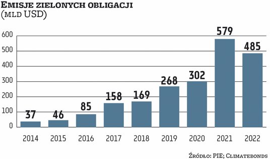 – o tyle niższa niż w rekordowym 2021 r. była zeszłoroczna światowa wartość sprzedaży zrównoważonych obligacji. Względem 2022 r. urosła o 1,9 proc.