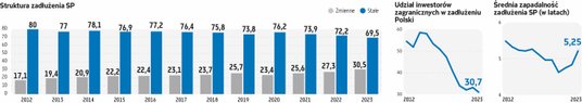 Jak widać na wykresie, trzy ostatnie lata przywróciły strukturę zapadalności naszego długu na taką, którą znamy z lat poprzednich. Ale niestety, oznacza to, że kiedy dług był tani (niskooprocentowany) plasowaliśmy krótkie papiery, kiedy zaś stopy procentowe wzrosły, a z nimi rentowność obligacji, fiksujemy oprocentowanie części nowego długu na wysokim poziomie.