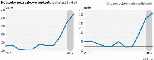 Czy uda się uplasować tak wielkie emisje długu na rynku? I jak to wpłynie na perspektywy sprzedaży obligacji w 2025 r., które zaplanowano w jeszcze większych kwotach? Potrzeby pożyczkowe netto na przyszły rok to 367 mld zł, a brutto – nawet 553 mld zł.