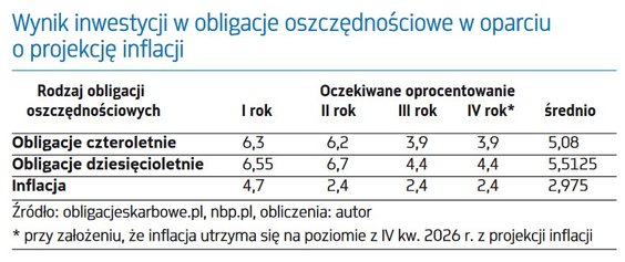 W 2026 r. inflacja ma już obniżyć się do celu inflacyjnego RPP (2,5 proc. plus minus 1 pkt proc.) bez względu na uwolnienie cen prądu i oprocentowanie obligacji indeksowanych inflacją niechybnie spadnie. Jednak średnia z trzech lat – w przypadku papierów, których oprocentowanie wyliczane jest na podstawie inflacji z pierwszych miesięcy roku – wciąż może być wyższa niż stałe oprocentowanie kupowanych w tym roku obligacji trzyletnich.