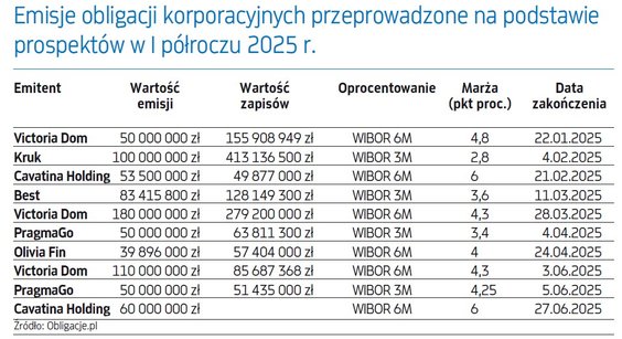 Przed dwoma laty rynek dopiero wychodził z dołka po ciosach, które zebrał w poprzednich latach (pandemia, a później załamanie notowań obligacji skarbowych i odpływy z funduszy dłużnych). Emitenci przyciągali więc inwestorów, oferując podwyższone marże, co przy WIBOR oscylującym w granicach 6 proc. dawało dwucyfrowe rentowności. W ubiegłym roku inwestorzy kupowali obligacje firm na wyścigi, emitenci mogli więc stopniowo oferować niższe marże doliczane do WIBOR, jednocześnie zwiększając wielkość ofert. W 2025 r. wysokość oferowanych marż spadła do historycznych minimów (naturalnie innych dla każdego z emitentów), ponownie wzrosła przy tym wielkość ofert. Przy czym ta ostatnia ma charakter zmienny. Powszechną praktyką (8 na 9 tegorocznych ofert) stało się ustalanie zmiennej wartości emisji obligacji. Emitenci, oferując kwotę np. 50 mln zł, zastrzegają, że w razie dużego popytu i z chęci jego zaspokojenia mogą zwiększyć wartość emisji np. o dodatkowe 50 mln zł. Brzmi to jednak nienaturalnie i jak wybieg marketingowy. Ostatecznie nikt z nas nie wybiera się do banku po kredyt np. na 100 tys. zł, ale jak „da się 200 tys. zł, to też wezmę, żebyście byli zadowoleni”.