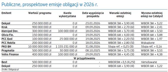 Już dwie miliardowe emisje ze strony największego banku hipotecznego zapewnią inwestorom dostęp do największej wartościowo oferty publicznych emisji papierów dłużnych innych niż skarb państwa, bo obecny rekord oferty (z 2025 r.) to 2,57 mld zł. Poza PKO BH inwestorzy mogą liczyć na oferty ze strony dziesięciu emitentów, których zdążyli już poznać.