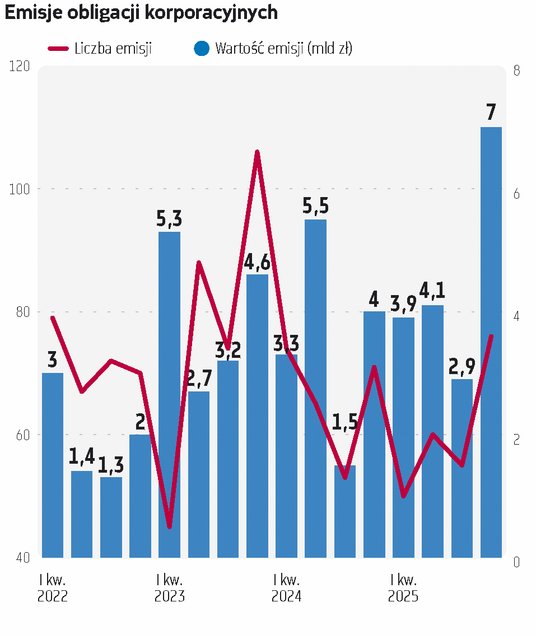W 2023 r. wartość emisji korporacyjnych (z tego grona wykluczono emisje bankowe i spółek bankowych) wyniosła z kolei 15,8 mld zł, a rok wcześniej 7,7 mld zł, zaś w 2021 r. było to 16 mld zł. Wynik zanotowany w 2025 r. dokumentuje więc historię rynku z ostatnich lat - od załamania w 2022 r. wartość rynku wzrosła ponad dwukrotnie.