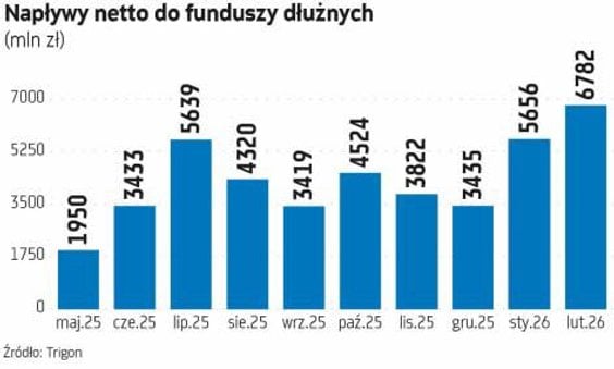 Fundusze dłużne weszły w marzec z dużą poduszką płynnościową. Ale w statystykach nie widać jeszcze marca, a saldo za ten miesiąc może okazać się istotnie niższe. Łącznie, w trakcie 12 miesięcy (od marca 2025 r. do końca lutego 2026 r.) do funduszy dłużnych napłynęło 48,3 mld zł, a w ostatnich 3 miesiącach 15,9 mld zł. Największe napływy odnotowały fundusze uniwersalne. Spore kwoty trafiły też do funduszy obligacji skarbowych. Trwa odbudowa zaufania do funduszy obligacji korporacyjnych, a to właśnie ta kategoria jest najbardziej narażona na ujemne saldo. Jej napływy wyniosły – 4,4 mld zł w ostatnich 12 miesiącach i 0,7 mld zł w ostatnich 3 miesiącach.