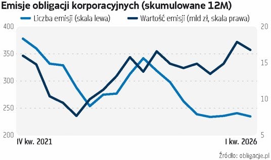 Od stycznia do marca emitenci przeprowadzili 44 emisje obligacji (z pominięciem sektora finansowego), co jest najsłabszym wynikiem w historii zbierania tych danych przez obligacje.pl, czyli od początku 2021 r. Tylko raz, w I kwartale 2023 r., liczba emisji była zbliżona (45), a średnia liczba emisji z ostatnich pięciu lat to prawie 73 kwartalnie. Jednak to, co wygląda na załamanie, w istocie jest właśnie odpoczynkiem po niezwykle intensywnym IV kwartale, w którym liczba przeprowadzonych emisji sięgnęła 76, za to ich wartość 7,0 mld zł, co było dla odmiany najwyższą wartością w nieco ponad pięcioletniej historii (średnia to 3,5 mld zł kwartalnie).