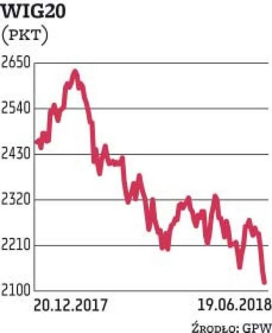 W efekcie sprzedający od początku kontrolowali przebieg notowań, fundując indeksom piątą z rzędu spadkową sesję. Na domiar złego WIG i WIG20 osiągnęły najniższe tegoroczne wartości. Krajowe indeksy poddały się nastrojom panującym na zagranicznych rynkach akcji. O postawie inwestorów zdecydowały obawy związane z kolejną odsłoną wojny handlowej USA z Chinami po tym, jak amerykański prezydent w ramach odwetu ogłosił kolejne cła na chińskie towary. Obawy inwestorów w największym stopniu dały o sobie znać na rynkach wschodzących. Oprócz Warszawy inwestorzy chętnie pozbywali się akcji na giełdach w Budapeszcie i Moskwie, a giełdy z naszego regionu wypadły słabiej niż zachodnioeuropejskie rynki, gdzie zasięg zniżek był mniejszy.
