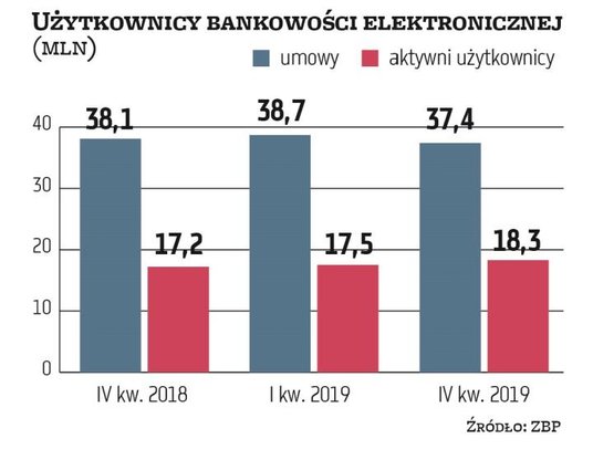 To wzrost o 0,38 proc. w stosunku do III kwartału. Liczba klientów aktywnie korzystających z bankowości internetowej, którzy przynajmniej raz w miesiącu logują się do niej, również się zwiększyła. Porównując do poprzedniego kwartału, widoczny jest wzrost o 1,18 proc. Liczba aktywnych klientów wyniosła ponad 18 mln.