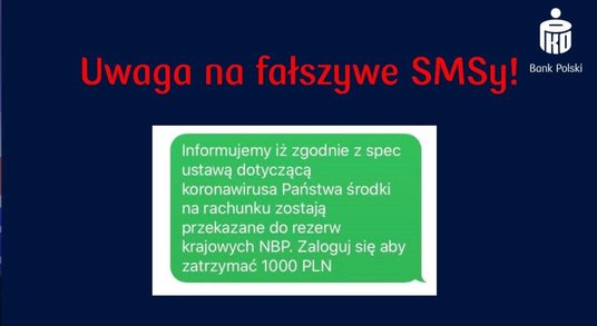 Największe polskie banki apelują do Polaków o ostrożność i nieodpowiadanie na fałszywe SMS-y rozsyłane przez oszustów rzekomo w imieniu banków. Na przykład PKO BP informuje, że jego klientom ktoś rozsyła fałszywe wiadomości nakłaniające do zalogowania się na stronach kontrolowanych przez oszustów. Bank apeluje, aby nie klikać w przesłane linki. Tak wygląda przykładowy fałszywy SMS wysyłany do klientów banków: