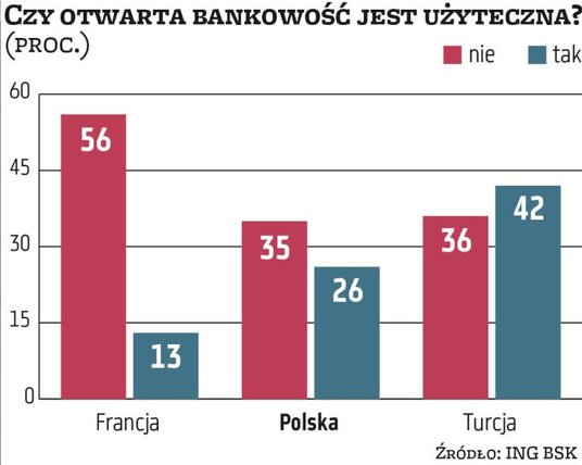 Możliwość tę wprowadziła dyrektywa PSD2, która została uchwalona przez Unię Europejską pod koniec 2015 r., a w Polsce weszła w życie w grudniu ubiegłego roku. Tymczasem tylko 36 proc. Polaków jest świadomych, że banki mogą na wniosek klienta udostępnić jego dane zewnętrznemu podmiotowi. 53 proc. o tym nie słyszało. W innych krajach Europy wiedza o otwartej bankowości jest jeszcze mniej powszechna – wynika z międzynarodowego badania „Finansowy barometr ING". W 13 krajach tylko 32 proc. osób o niej słyszało, a 55 proc. zaprzeczyło. Rozwój otwartej bankowości może również ograniczać fakt, że niewiele osób dostrzega korzyści, które mogłyby z niej płynąć. Tylko 26 proc. Polaków i 24 proc. mieszkańców Europy stwierdziło, że możliwość udostępniania danych klientów przez banki zewnętrznym podmiotom jest czymś użytecznym. Jedynie 22 proc. Polaków i 27 proc. mieszkańców Europy wyraziło gotowość udostępnienia danych. – Aby otwarta bankowość zaistniała szerzej w społecznej świadomości, muszą się najpierw pojawić konkretne i użyteczne jej zastosowania. Można założyć, że będą to aplikacje ułatwiające zarządzanie domowym budżetem oraz ułatwienia w dokonywaniu płatności. Mam jednak wątpliwości, czy usługi te zaoferują wystarczające korzyści, aby ich potencjalni użytkownicy przełamali niechęć do udostępniania swoich danych finansowych na zewnątrz. Trudno sobie bowiem wyobrazić, aby dokonywanie płatności było dużo łatwiejsze niż obecnie. Z kolei potrzebę zaawansowanego zarządzania swoimi pieniędzmi odczuwa co najwyżej 5–10 proc. osób – mówi Karol Pogorzelski, ekonomista ING BSK.
