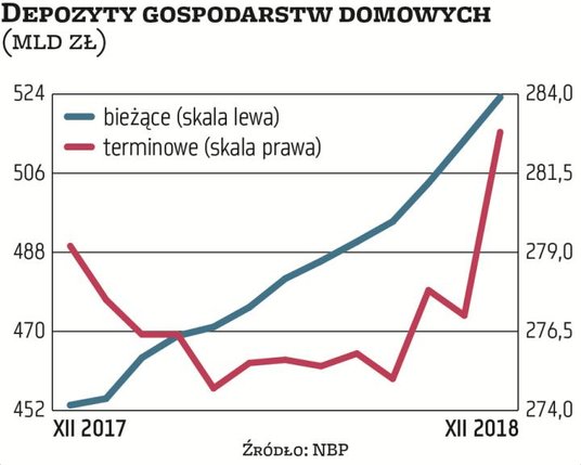 Bank centralny zalicza do depozytów bieżących konta oszczędnościowe. To im można przypisać sporą część ubiegłorocznego przyrostu (banki niestety nie podają wartości zgromadzonych na nich środków). Ale pieniędzy przybywało również na nieoprocentowanych rachunkach osobistych. Po prostu przez niemal cały rok utrzymywanie środków na lokatach terminowych się nie opłacało – ich realne oprocentowania były często ujemne. A banki, które konta oszczędnościowe traktują jak lokaty terminowe, zachęcały klientów promocyjnymi oprocentowaniami na różne – nawet 12-miesięczne – okresy. Dzięki temu pozyskiwały środki do finansowania akcji kredytowej. I chociaż skuszeni promocjami klienci otrzymywali po ich upływie oprocentowania często symboliczne, pozostawali na ogół wierni kontom.
