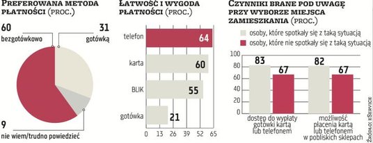 O odwrocie od gotówki świadczą też najnowsze badania preferencji Polaków wobec form płatności i ich stosunku do pieniędzy. – Stale rośnie bezgotówkowość społeczeństwa. Aktualnie już 60 proc. badanych wskazuje płatności bezgotówkowe jako preferowaną formę płacenia. Na podobnym poziomie jak w ubiegłym roku utrzymuje się odsetek respondentów preferujących gotówkę, stanowią oni 31 proc. populacji. Do 9 proc. spadł udział osób niezdecydowanych, z której formy płatności wygodniej im korzystać – mówi Dorota Osek, psycholog ekonomiczny z instytutu badawczego ARC Rynek i Opinia, który na zlecenie eService zrealizował badanie.