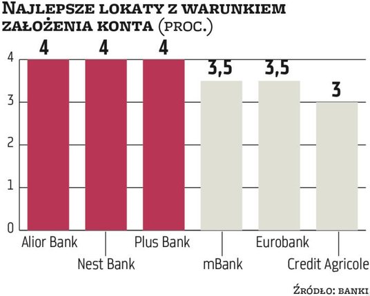 Podobnie wygląda sytuacja w przypadku lokat. Jeśli po prostu skorzystamy z oferty swojego banku, to przeciętnie możemy liczyć na oprocentowanie wynoszące około 1,5 proc., a w niektórych bankach nawet poniżej 1 proc. – Bardziej opłaca się jednak skorzystać z promocji, która pozwoli nam założyć lokatę z oprocentowaniem 3–4 proc. Dla przykładu, lokatę na 4 proc. możemy założyć w Alior Banku, Nest Banku i Plus Banku, ale pod warunkiem, że jednocześnie założymy tam konto – wyjaśnia Sadowski. Oczywiście nic nie stoi na przeszkodzie, aby po zakończeniu lokaty takie konto zamknąć.
