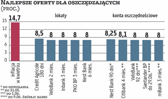 Teraz deponenci powinni uważnie śledzić wskaźniki. Przede wszystkim inflację – CPI i bazową. Szybki spadek ich dynamiki może – choć nie musi – oznaczać spadek stóp procentowych NBP, a wraz z nimi odsetek oferowanych przez banki. A tym na zbyt drogich depozytach nie zależy. W obecnej sytuacji wcale im na zwiększaniu bazy depozytowej nie zależy.
